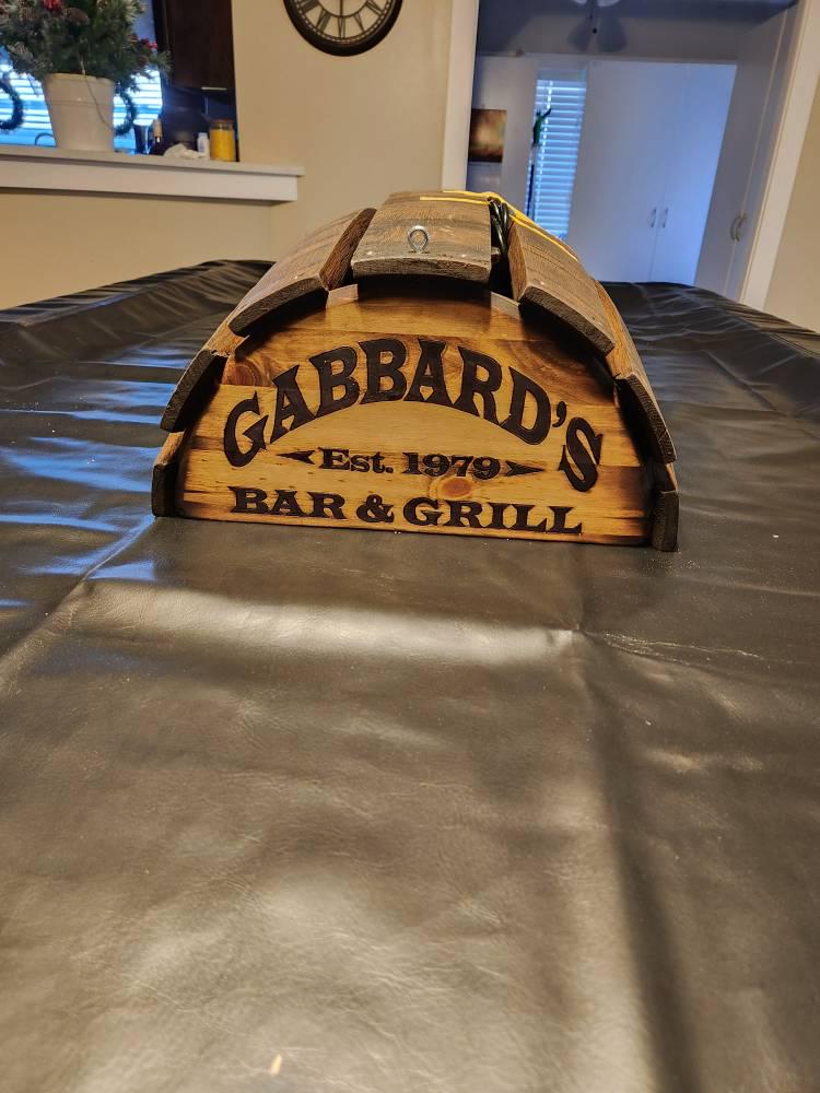 This listing is for a customized version of my barrel light. I can do almost any theme or logo or your own bar name on these. All artwork is woodburned and / or stained or painted on both ends of the light depending on design details.